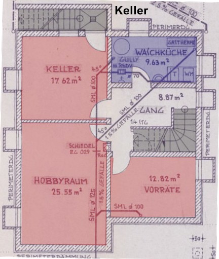 hat einen Wäscheabwurfschacht über das EG, der in die Waschküche führt. Alle